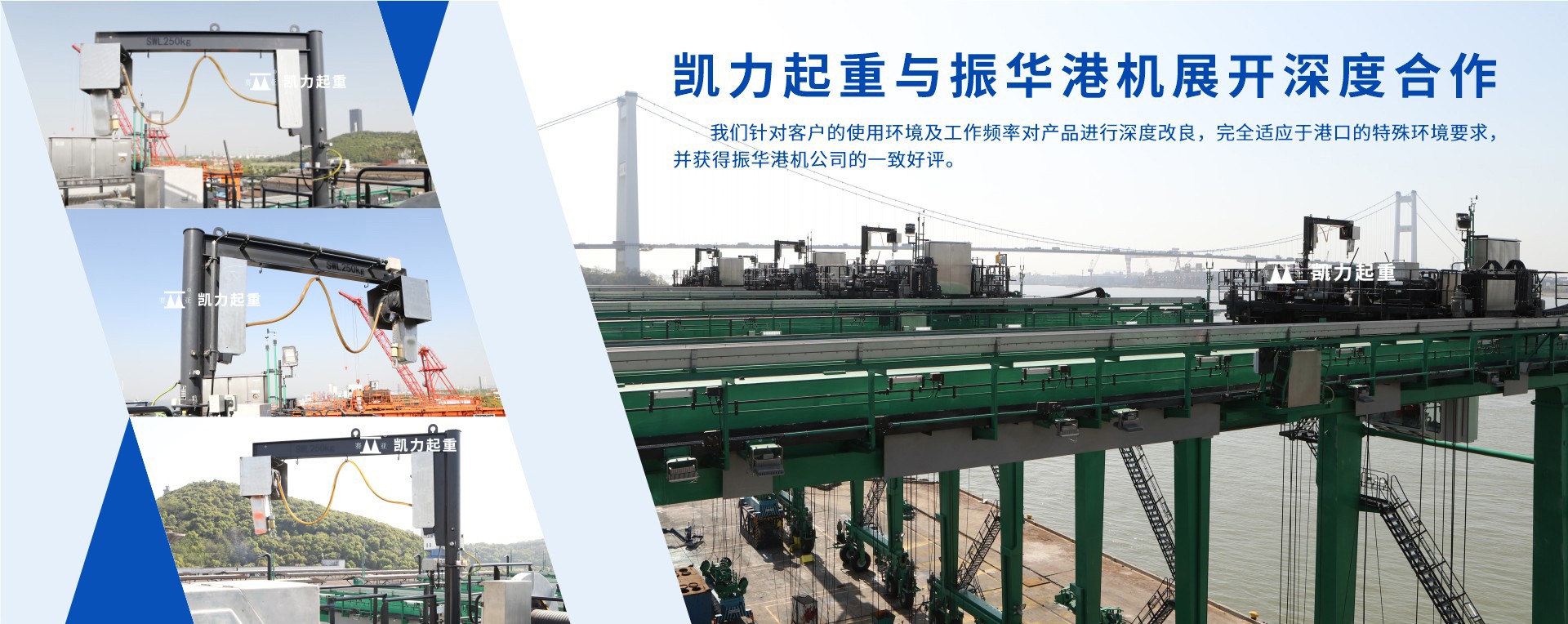我司的旋臂式起重機在取得CE(歐盟)認(rèn)證后,得到了振華港機的青睞,陸續(xù)簽訂了上海宜東港、廈門...